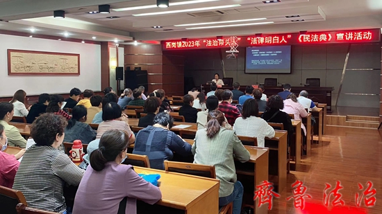 齐鲁法治(枣庄讯)于清林 为进一步学习宣传《民法典》,提升“法治带头人”“法律明白人”法治素养和依法解决矛盾纠纷的能力,加快推进法治乡村建设,近日,枣庄滕州市西岗镇组织开展了2023年“法治带头人”“法律明白人”《民法典》宣讲活动,邀请山东君雅律师事务所陈晨律师进行宣讲授课,全镇70余名“法治带头人”“法律明白人”参加了培训。