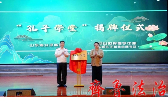 齐鲁法治(威海讯)龙艳妮 7月24日,山东省女子监狱孔子学堂揭牌仪式在山东省女子监狱举行。尼山世界儒学中心(中国孔子基金会秘书处)党委委员、副秘书长,孔子学堂推进委员会主任周静,山东省女子监狱党委书记、监狱长李延群出席活动并致辞。
