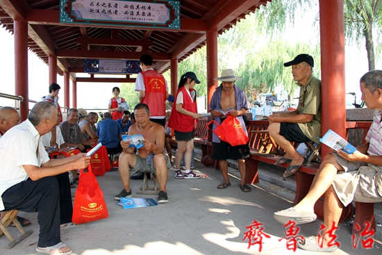 在村口凉亭内,服务队志愿者们向集中乘凉的村民们讲解农村生产生活可能会面对的各类法律问题,如婚姻、继承、房屋买卖、租赁、邻里关系等方面向大家普及法律知识,进行针对性宣讲互动。并发放了学法读本、法治书包等材料,受到村民的一致好评。