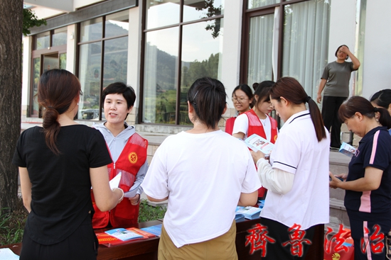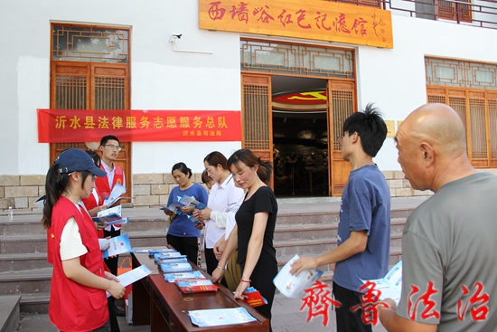 齐鲁法治(临沂讯)于清林 临沂沂水县院东头镇西墙峪村,在“兵支书”王成成的带领下,将昔日的抗日堡垒村变成了远近闻名的乡村振兴样板村。为提高村民和游客的法律素质和法治意识,2023年8月11日,沂水县司法局组织院东头司法所、普法宣传骨干及大学生志愿者到院东头镇西墙峪等村开展志愿普法宣传活动。