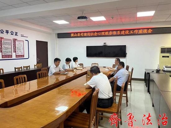 微山县卫健局党委副书记、疾控中心党总支书记李辉带领疾控中心副主任杨友枫、卫健局疾控科副科长王辉等一行到济宁微山县司法局就微山县司法局社会心理服务体系建设问题进行座谈。