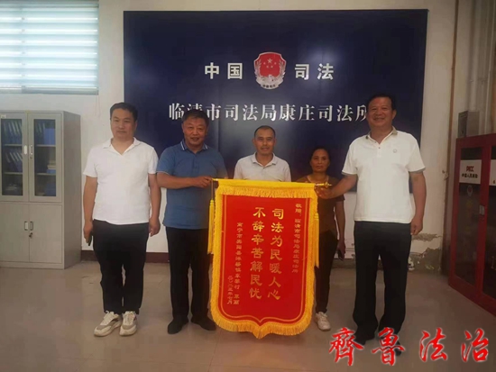 齐鲁法治(聊城讯)于清林 7月14日一大早,聊城临清市康庄司法所办公室传来咚咚咚的敲门声,李所长开门看到满含热泪的覃某,覃某操着外地口音说到“我的身份证终于办下来了,李所长你真是我的大恩人。”说着手里拿出一面锦旗,写到“司法为民暖人心 不辞辛苦解民忧”。