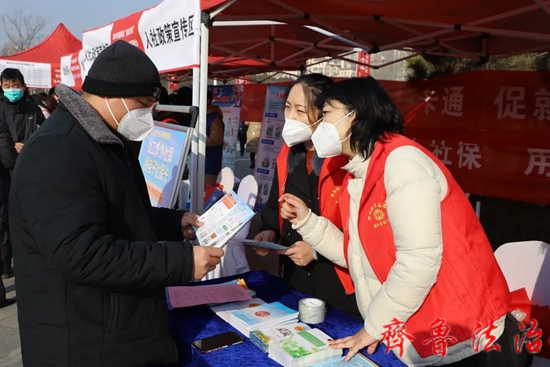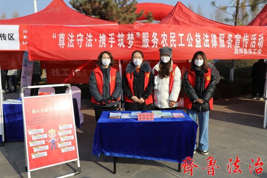 齐鲁法治(济宁讯)于清林 近日,济宁嘉祥县县总工会抓住2023年嘉祥县“春风行动”暨企业复工复产人才招聘会的有利时机,组织开展了“尊法守法·携手筑梦”服务农民工公益法律服务活动,进一步加大对企业法律援助力度,保障农民工合法权益。