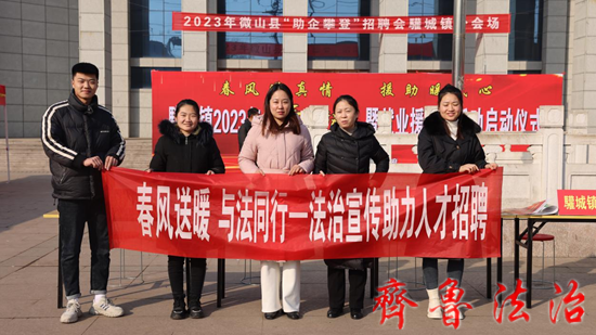 齐鲁法治(济宁讯)于清林 春风暖人心,普法惠民生。1月31日,济宁微山县驩城镇为方便广大群众就地就近就业,在驩城镇电影院广场举办大型招聘会。为进一步做好新形势下求职者法律服务工作,保障求职者合法权益,增强他们的法治意识,驩城司法所结合“春风行动”就业援助月活动,开展“春风送暖 与法同行”专题法治宣传,助力人才招聘,让劳动者安心就业。