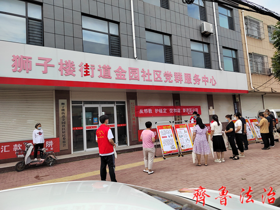 齐鲁法治(聊城讯)李春军 为增强人民群众防范、识别、抵制邪教侵蚀的意识和能力,进一步加大反邪教警示教育宣传力度,营造人人反邪教的良好氛围,按照阳谷县法学会部署安排,7月22日上午,阳谷县法学会狮子楼街道工作站联合街道综治中心、狮子楼司法所,反邪教志愿者深入狮子楼街道金园社区开展反邪教宣传活动。