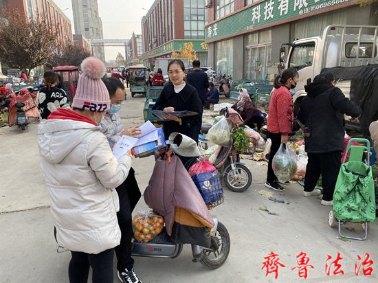 齐鲁法治(潍坊讯)于清林 11月18日,潍坊寿光兴源法律服务所走进寿光市文家市场开展“普法宣传进市场”活动,工作人员向广大群众“零距离”普及法律知识,提供贴心的法律服务。