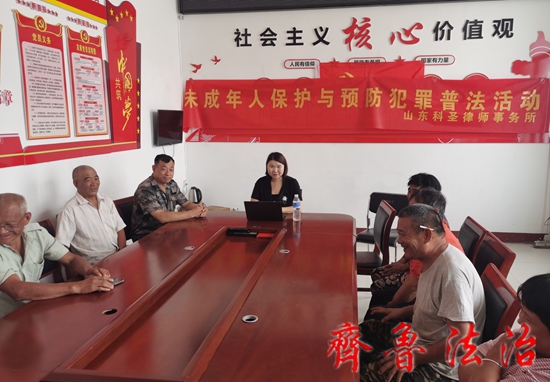 枣庄滕州市西岗司法所邀请滕州市“八五”宣讲团成员、山东科圣律师事务所曹真律师来到西岗镇段庄村开展《未成年人保护法》普法宣讲活动。