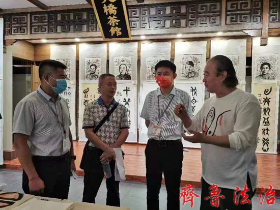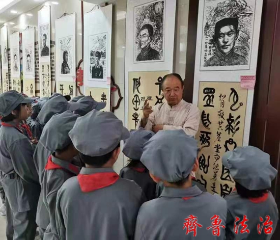 学党史学文化,结合本职工作,落实到实处。烟台市司法系统积极引荐和推动百位英模书画作品邀请展,以学党史促发展,让飘扬在司法系统里那一抹党旗红激励司法工作健康前行,进而助力提升律师的服务素养与政治修养。在北京市盈科烟台律所大楼的短短四天展览,除了全体律师所党员、律师和全市律师协会会员外,每天都邀请各行各业的党员群众踊跃前来参观学习拍照。鲁东大学盈科法学院孙明院长,在展览最后一天带领他的学生到展厅逐幅作品参观询问,当他站在阮啸山这位英模作品前时,万分感慨的说:阮啸山同志曾担任首位中央审计委员会主任,被誉为苏区经济卫士,审计呕心血,主政见威严,他为人民审计制度的建立奠定了坚实的法制基础。今天,我们学法律的应把我党审计工作的始祖牢牢记住,以史为鉴,学习前辈,开创法学未来。师生们默默的把阮啸山的名字记在心中。威海世昌中学把历史课、美术课搬进了百位建国英模书画展上,同学们学历史看书画对号入座,学党史学临摹一举双得,感觉这堂课特别新鲜有意义,能和自己想学习的东西结合在一起是最快乐的事。