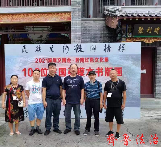 齐鲁法治(威海讯)马丹鸣 2021年3月20日,“100位为新中国成立作出突出贡献的英雄模范人物”百幅水书版画作品联合创作完成。我和版画家李振龙抱着503个日夜创作的100幅作品,踏上了全国巡展之路。在获得中共贵州省委宣传部和贵州省民族宗教事务委员会审核批准后,6月2日在贵州民族文化宫隆重拉开了全国巡展贵州启航展的序幕。这一重大历史题材和独特的民族艺术形式作品一经问世,便赢得了普遍赞誉和社会各界的极大关注。截止12月20日,全国19场展览,参观者达41150人。大家一致认为:百幅水书版画作品,书写绘画的是民族文化,镌刻的是民族精神,展示的是书画家的心灵机致,永远留下的是不朽的民族华章,充分表达出中国人民及人类共同的理想和愿望。