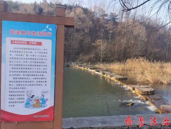 齐鲁法治(临沂讯)于清林 为进一步推进法治文化建设,提升普法教育质量,弘扬法治精神,临沂沂水县崔家峪镇将法治文化、普法宣传与居民生活有机融合,在公园河滨设立“法治文化休闲步道”,把法治精神、法律知识用通俗易懂、寓教于乐的方式植根于群众心中。