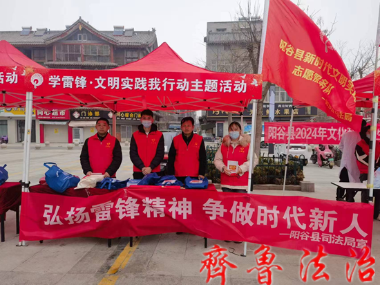 3月5日上午,聊城阳谷县司法局在县图书馆东广场参加2024年“学雷锋•文明实践我行动主题活动启动仪式”,为广大群众提供法律宣传和咨询服务。