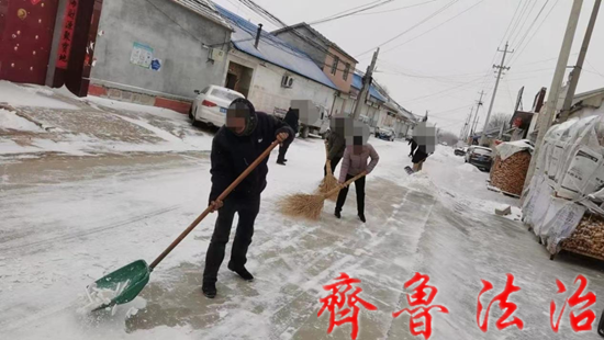 齐鲁法治(德州讯)于清林 “千里冰封,万里雪飘。”连日来,大雪纷飞,雪花将齐鲁大地点缀得银装素裹,但是也给当地群众生活和出行带来极大不便。为增强社区矫正对象社会责任感,培养奉献社会服务人民的优良品质,2月21日上午8时德州禹城市司法局莒镇司法所组织全体社区矫正对象到莒镇商贸街开展了一场清除积雪公益活动。