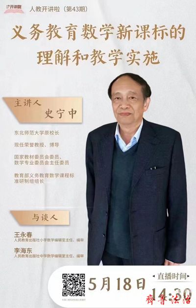 5月18日下午,东营区弘文小学全体数学教师一起观看了史宁中教授的《义务教育数学新课标的理解与教学实施》讲座直播。