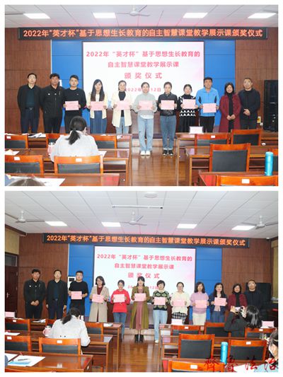 盖校长为参加“英才杯”基于思想生长教育的自主智慧课堂教学展示课的教师颁发荣誉证书。