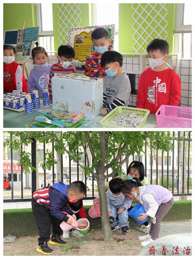 教师们根据各年龄班幼儿的年龄特点及兴趣爱好,组织幼儿通过多种方式走进“世界地球日”,牢固树立环保意识,保护地球母亲。小班组的孩子们在老师的带领下,通过阅读绘本、学习童谣、为小树苗浇水等方式,在心中播撒下环保的种子;中班组的孩子们,在家长的帮助下,利用家园力量,开展“变废为宝创意玩”活动,此次活动选材于生活中的废旧物品,通过小手改造变成一件件美丽的服装、手工作品;大班组的孩子们则通过学习垃圾分类,对园所附近垃圾进行分类捡放。教师们也通过变废为宝,将生活中的废旧物品自制玩教具的方式,巩固树立节约资源的意识。