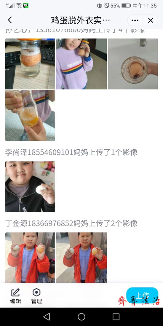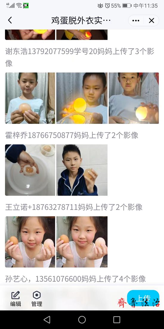 “哇,成功啦,成功啦!”三年级的谢东浩同学忍不住欢呼雀跃,一脸的兴奋。历时5天的鸡蛋“脱”外衣实验,终于成功了。