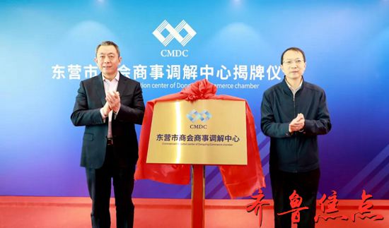 齐鲁焦点(东营讯)李春军 1月14日,东营市商会商事调解中心举行揭牌仪式。市委常委、统战部部长聂建军,市中级人民法院党组书记、代院长赵国滨共同为东营市商会商事调解中心揭牌并致辞。市政协副主席、市工商联主席生钦勇主持揭牌仪式,市委统战部副部长、市工商联党组书记、常务副主席高申廉,市政协常委、市政协人口资源环境委员会主任王春红,市行政审批服务局局长扈新安参加揭牌仪式。