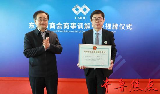市行政审批服务局负责同志为东营市商会商事调解中心颁发了登记证书,调解中心负责同志介绍了中心建设情况,调解员代表作了表态发言。市政协工商联界别委员、新的社会阶层人士代表,东营区、开发区法院,东营区工商联,调解中心的有关同志,新闻媒体记者以及社会各界人士参加揭牌仪式。