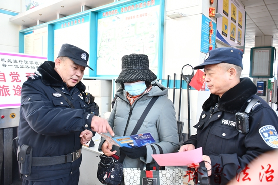 齐鲁法治(青岛)吕高波  为有效净化网络环境,维护辖区社会稳定,提高辖区群众对网络谣言的防范意识,近日,平度市公安局凤台派出所组织民警深入辖区汽车站开展打击抵制网络谣言普法宣传活动。