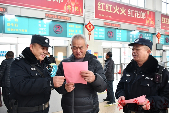 “现在社会上诈骗手段形式多样,我们的员工一定要时刻警惕,当涉及到自己相关信息和隐私问题时,一定不要随意提供给陌生人。”车站警务区高警长这样给群众说。
