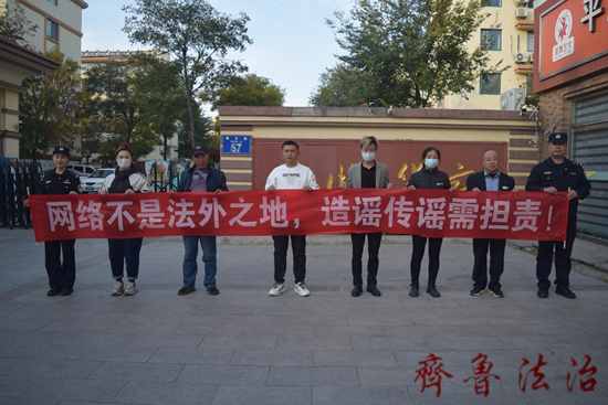 齐鲁法治(青岛)吕高波 为进一步提升辖区群众对网络谣言的辨别能力和防范意识,营造“不造谣、不信谣、不传谣”的良好网络氛围。10月28日,平度市公安局泰山路派出所走进天悦华府小区开展打击整治网络谣言宣传活动。