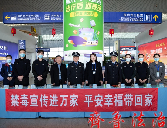 烟台市禁毒办抓住春节集中返乡的有利时机,联合烟台车务段、港航公安局、机场分局,组织全市联动,在主要车站、机场、港口等人员密集场所开展以“禁毒宣传进万家 平安幸福带回家”为