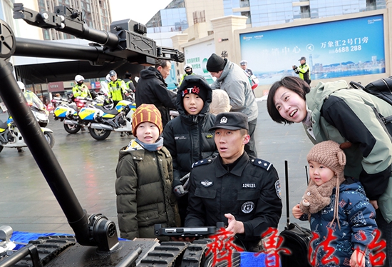 1月7日,烟台市公安局以“砥砺奋进110,一心为民保安宁”为主题,在莱山区万象汇广场,举办全国第38个“110宣传日”集中宣传活动。