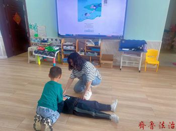 齐鲁法治(东营讯)赵万章 水是生命之源,它有温柔的一面,滋养着人类和万物,但它也有凶恶的一面,有时会吞噬人的生命。炎炎夏日,游泳和玩水是小朋友们十分喜爱的运动和消夏避暑方式,溺水事故将逐渐进入高发期,为有效预防幼儿溺水事故的发生,切实做好幼儿防溺水工作,进一步增强幼儿的自我防护意识,保障幼儿生命健康安全,东营区文汇街道中心幼儿园开展了以“安全“童”行,谨防溺水”为主题的防溺水应急演练活动。