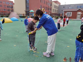 齐鲁法治(东营讯)胡猛 跳绳是大班幼儿常规运动项目,自从孩子入大班以来,老师们就对幼儿进行了跳绳技能的练习,老师们从示范跳绳的姿势、动作、频率等基本动作着手,让孩子们掌握正确的动作要领,获得手、脚、眼的协调与配合,跳绳开始前教师带领孩子进行热身运动,激发孩子参与跳绳的兴趣。