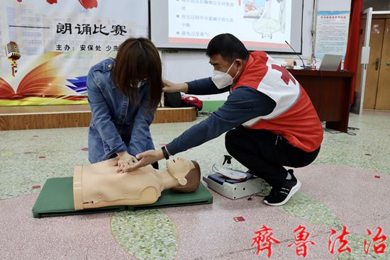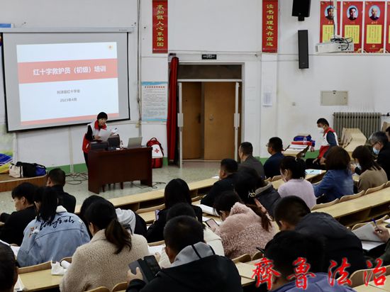 齐鲁法治(东营讯)赵永翠 为促进应急救护进学校,加强学校安全管理从业人员的应急救护能力,基本掌握应急救护和创伤救护知识,4月11日,东营市利津县第二实验学校联合县红十字会组织开展了救护员(初级)培训。