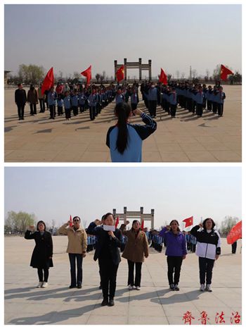 在烈士纪念碑前,全体师生整队、肃立,齐唱国歌,深情缅怀革命英烈,寄托对先烈的哀思和敬仰。随后,全体党员和少先队员齐向革命烈士默哀并分别宣誓。