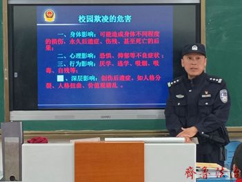 金所长首先向全体师生介绍了当前校园欺凌的主要形式和特点,并重点强调了如何识别、应对和举报校园欺凌行为,引导学生提高防范能力,远离暴力。随后,金所长结合案例,从什么是校园暴力,为什么要预防校园暴力,怎样预防校园暴力等方面,对如何正确对待和处理矛盾纠纷,以及面对他人实施的不法侵害时,应该如何保护自己等进行了讲解。同时,还就如何避免成为被欺负者,遇到不法侵害后,该如何处