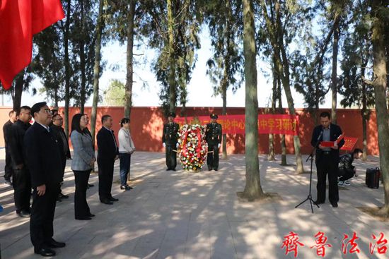 齐鲁法治(临沂讯)赵永翠 学习沂蒙精神,传承红色基因。清明节来临之即,临沂市郯城县高峰头镇组织理论中心组成员到镇烈士陵园开展了“祭典英烈表初心”活动,围绕缅怀先烈,不忘历史,继承遗志,服务人民,现场进行了默哀献花、瞻仰英烈事迹、重温入党誓词等仪式,镇理论中心组成员通过祭典革命先烈,聆听革命故事,学习革命历史,进一步坚定了共产主义理想信念。