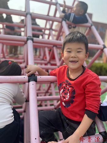 攀爬架具有一定的难度,可以培养幼儿的勇气和胆量,大班幼儿四肢比较灵活,心理又处于一个爱冒险的年纪,所以攀爬架是最适合幼儿的户外探险活动。活动刚开始小朋友便迫不及待的登上攀爬,他们一个接一个翻越“高山”,跨过“大海”,最后成功的到达目的地,整个过程中有些小朋友胆子虽然比较小畏难心里比较重,但是在其他小朋友的鼓励和带领下也慢慢的变得勇敢起来,不断的进行尝试,最后也得到了胜利的果实。
