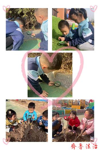 孩子们到幼儿园的各个角落,他们弯着腰在草地、植物角和种植园里仔细寻找着小蚯蚓、小蚂蚁等的踪迹,一起探索惊蛰这一天大自然的秘密,不时交流自己的发现:“快看,这里冒出小草啦!”刘忆指着种植园兴奋地喊道。“哇,我看到小蚂蚁了!”“老师快看,这里有好多蝌蚪呢!”小动物们出来活动,怎么能少了孩子们的身影呢!看,他们纷纷结伴游戏,平衡车、胯下传球、四轮滑板车……玩得可开心了!