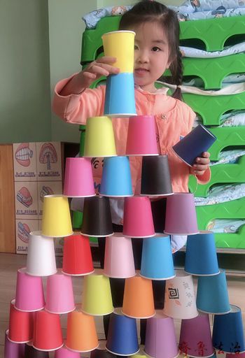 东营区文汇街道中心幼儿园小二班根据幼儿年龄特点,在搭建区投放了丰富的低结构材料,鼓励幼儿自由选材、合作搭建,在搭建游戏中发展建构能力和社会交往能力。行动是最好的老师,孩子们通过自己动手操作搭建出了自己心目中的城堡搭。