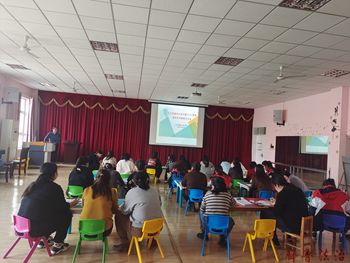 东营区文汇街道中心幼儿园召开新学期全体教职工大会。
