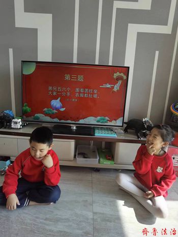 家长们还举行了一次别开生面又趣意盎然的家庭版元宵佳节猜灯谜活动。猜谜过程中孩子们对着谜语认真的思考,猜中后开心地手舞足蹈。