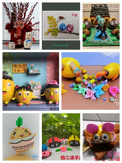 同学们以木瓜为主体,橡皮泥、彩纸、纸盒、包装袋等物品做辅助材料,进行设计制作,将一个个木瓜变成了憨态可掬的小雪人、温馨的木瓜一家、遥远时代的远古苍龙、创意无限的木瓜射手......一件件立意新颖、制作精美、色彩缤纷的作品无不显示着孩子们的用心和无限的想象力。