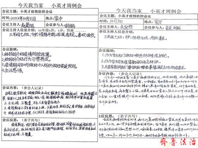 会后,小英才与爸爸妈妈们一起记录下了家庭会议的内容与反思,在反思中不断成长。