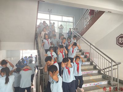 2022年9月26日丁庄街道中心小学全体师生开展了防震、防火应急疏散演练。