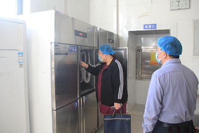 东营市教育局食品安全检查组来到东营市经济技术开发区丽景小学餐厅检查食品安全。