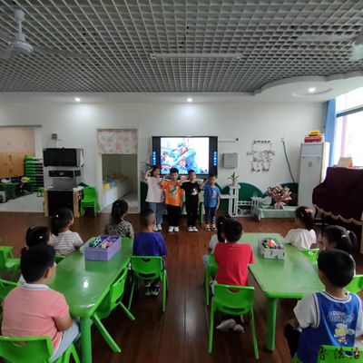 各年级组根据幼儿的年龄特点,分别通过观看视频、手工制作、诗歌朗诵等形式开展了丰富多彩的教育活动,其中大班组教师带领幼儿观看了《二小放牛郎》、《闪闪的红星》等视频,让幼儿了解了革命英雄的感人事迹,珍惜现在来之不易的幸福生活,同时制作了五星红旗。中班组教师带领幼儿以唱歌、朗诵诗歌等形式表达了自己对祖国的热爱之情。