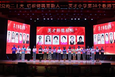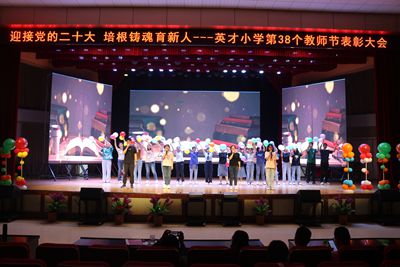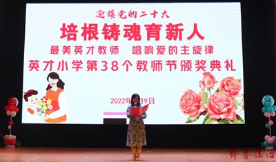 9月9日,东营经济技术开发区英才小学隆重举行“迎接党的二十大,培根铸魂育新人”庆祝第38个教师节表彰大会