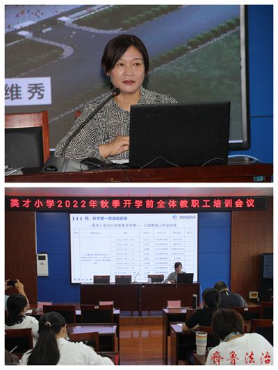 8月29日,英才小学2021年秋季开学前全体教职工培训会正式拉开序幕,会议由党支部书记、校长盖维秀主持。