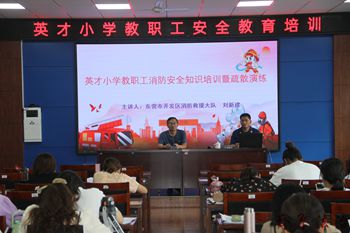 在2022年秋季开学及消防安全检查日来临之际,英才小学于8月31日,特邀东营市开发区消防救援大队刘新建教官,对全体教职工进行了消防安全教育培训及消防应急演练活动。