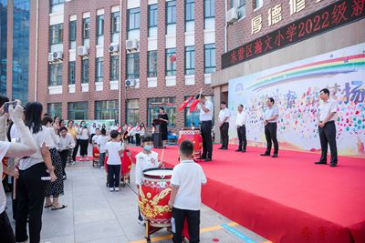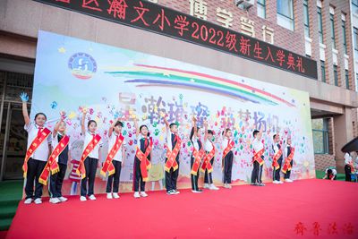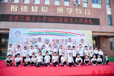 8月31日上午,东营区瀚文小学举行了2022级新生入学典礼,一年级学生、家长和其他年级学生代表、家长代表及全体教师参加了典礼仪式。