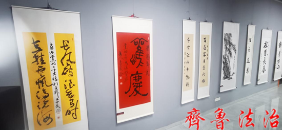 中国新闻出版书协主席王云武因为疫情的原因,不能到展览现场,他委托协会常务副秘书长、民进中央文化艺术委员会委员、中国文学艺术基金会文创基金秘书长李国富致辞,原威海市委宣传部副部长、威海社科联主席、一级调研员刘昌毅讲话,原威海科学技术协会常务副主席吕少明,高新区怡园街道办事处古山社区党总支书记王明亮宣布开幕,汉字书写解码创立者、中国新闻出版书法家协会教育培训部副主任、哈尔滨工业大学(威海)书院导师杨景舒主持开幕式。