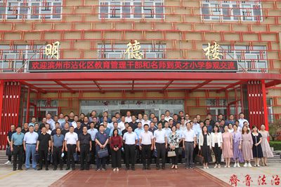 滨州市沾化区教育和体育局管理干部、中小学校长、名师一行百人在滨州市沾化区教育和体育局局长丁明新的带领下,来到东营经济技术开发区英才小学进行全方位地参观学习。