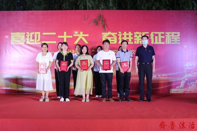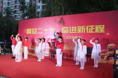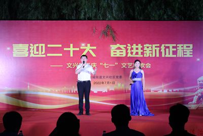 2022年7月1日,东营经济技术开发区英才小学党支部走进文兴社区联合开展“喜迎二十大,奋力新征程”庆“七一”文艺晚会暨优秀表彰活动。